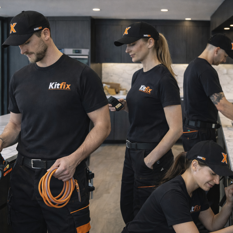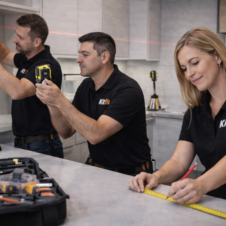En Kitfix somos instaladores especializados en cocinas. Aunque las tiendas suelen tener sus propios montadores, tú puedes elegir quién instala tu cocina. Si nos eliges, realizaremos un montaje profesional con un alto nivel de precisión, orden y limpieza.